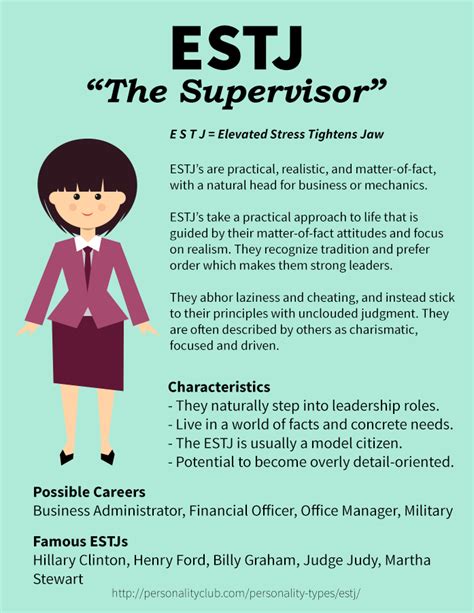 In the vast tapestry of human personalities, the ESTJ personality type stands out as a beacon of order, efficiency, and unwavering pragmatism. This comprehensive guide delves into the depths of the ESTJ psyche, exploring their unique traits, preferences, strengths, and areas for growth. Through a deep understanding of ESTJs, we gain valuable insights into their motivations, behaviors, and the intricate workings of their minds.